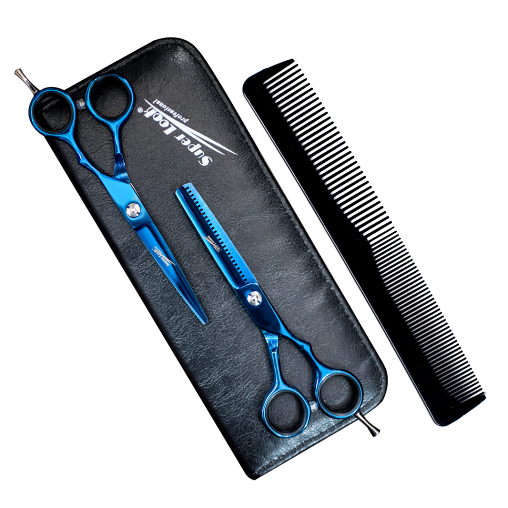 El set R08 Blue ofrece una solución completa para estilistas con su elegante conjunto de tijeras. Incluye tijeras lisas de 5.5″, ideales para cortes precisos y detallados, así como tijeras entresacadoras para texturizar y dar forma al cabello de manera profesional. Además, el set viene con una penilla para completar tu kit de herramientas. Perfecto para quienes buscan calidad y versatilidad en cada corte.
