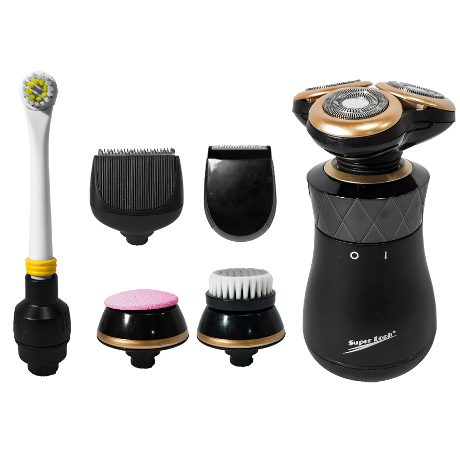 El afeitador multiusos SLP-495 está diseñado para ofrecer una amplia gama de funcionalidades en un solo dispositivo. Con 7 funciones en 1, incluye depilador de nariz, exfoliador, dos cabezales de corte, cepillo de dientes, shaver y guía de corte. Su base inalámbrica de carga asegura una recarga sencilla y sin complicaciones. Recargable y versátil, es la herramienta ideal para un cuidado personal completo y eficiente.